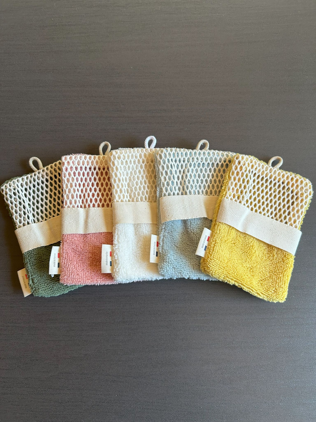 Eponge en viscose de bambou et polyester. Filet en coton.