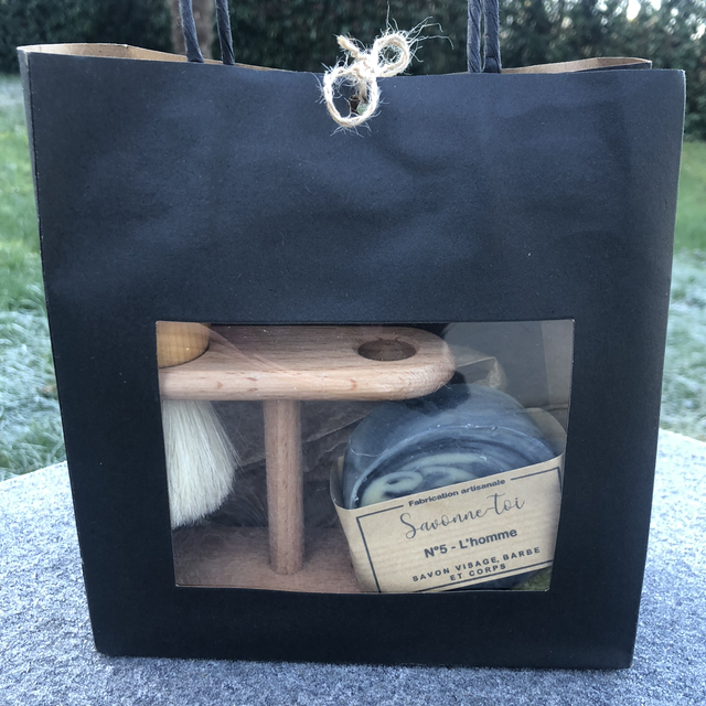 Coffret comprenant : Un savon N°5 L'homme : pour le visage, rasage, corps et barbe + 1 porte blaireau-rasoir*** + 1 blaireau****