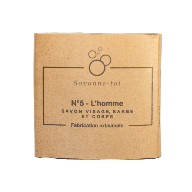 Savon hydratant pour le rasage, le visage et le corps. Parfumé aux huiles essentielles biologiques de lavandin super et de patchouli.