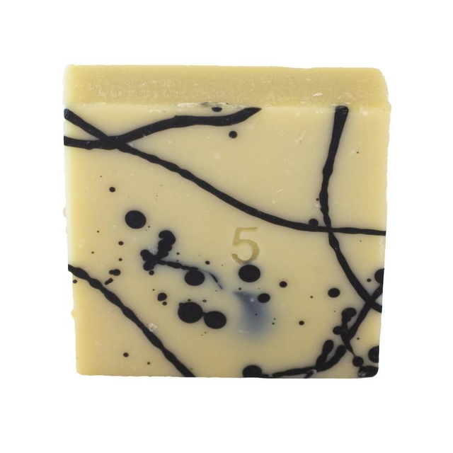 Composition : eau, huile d’olive*, huile de coco*, beurre de karité brut*, huile de colza*, huile de ricin*, huile de chanvre*, huile essentielle de lavandin super*, huile essentielle de patchouli*, argile blanche*, charbon végétal.