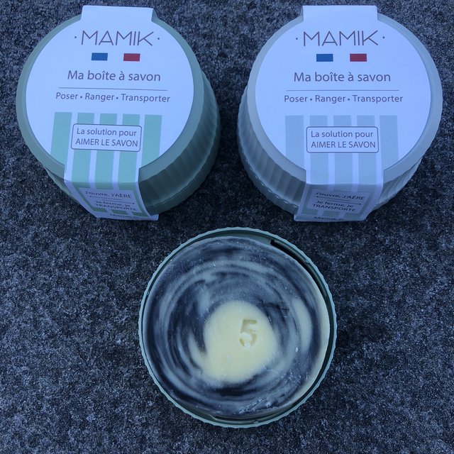 *Boite à savon ronde Mamik, fabrication française à partir de bouteille recyclée. Pour déposer le savon ou pour le transport.